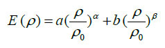 In this equation the E(ρ) is the energy of each Neutron, α, β, a and b are free and independent parameters, ρ is the density of the world and ρ0 is the Neutron density.