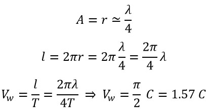 Considering the Figure (1), the path traversed during the motion of an electromagnetic wave is equivalent to the circumference of a circle with radius “A.” To calculate the speed, we consider the following equations: